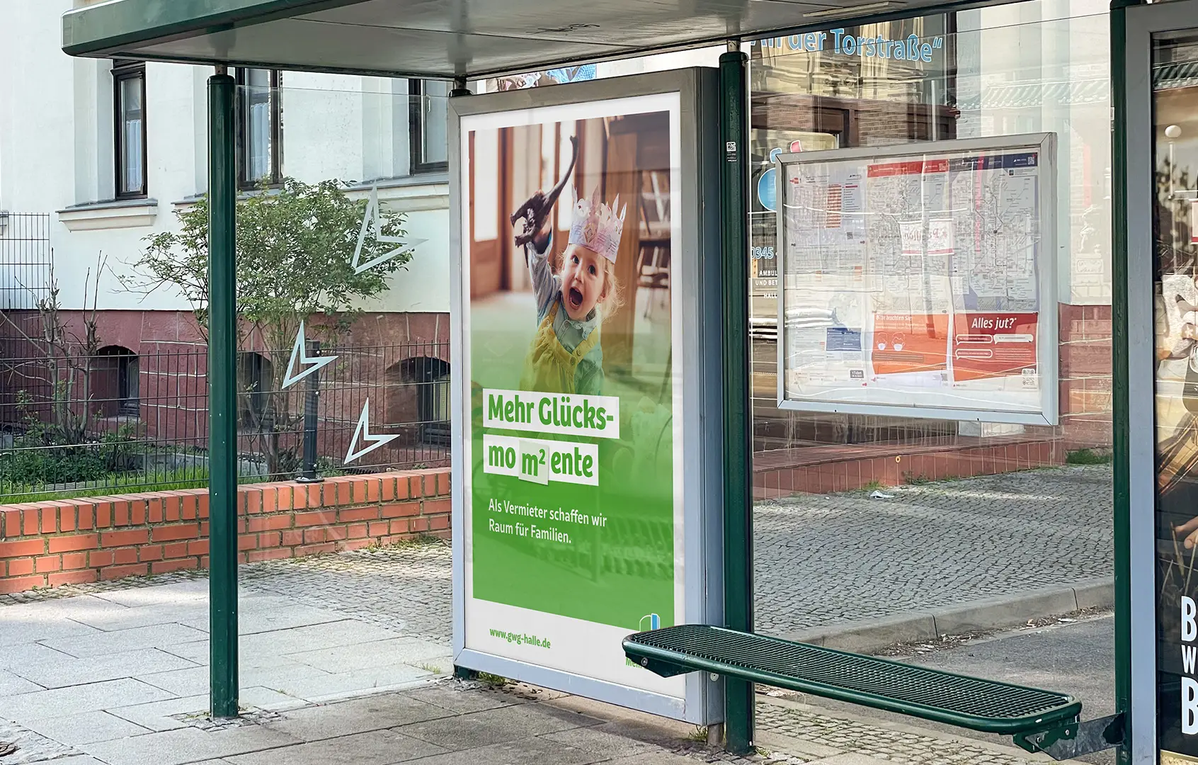 Ziel der Imagekampagne für die GWG Halle-Neustadt war es, die GWG als verlässlichen Partner zu zeigen, der Nähe schafft, Gemeinschaft stärkt und im Stadtteil fest verankert ist.