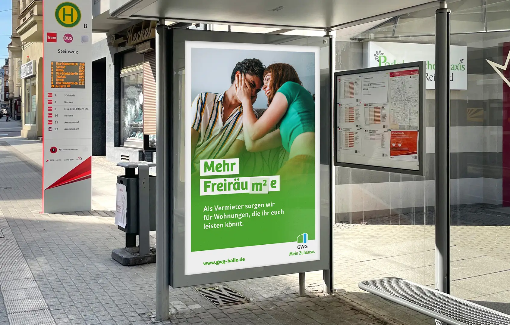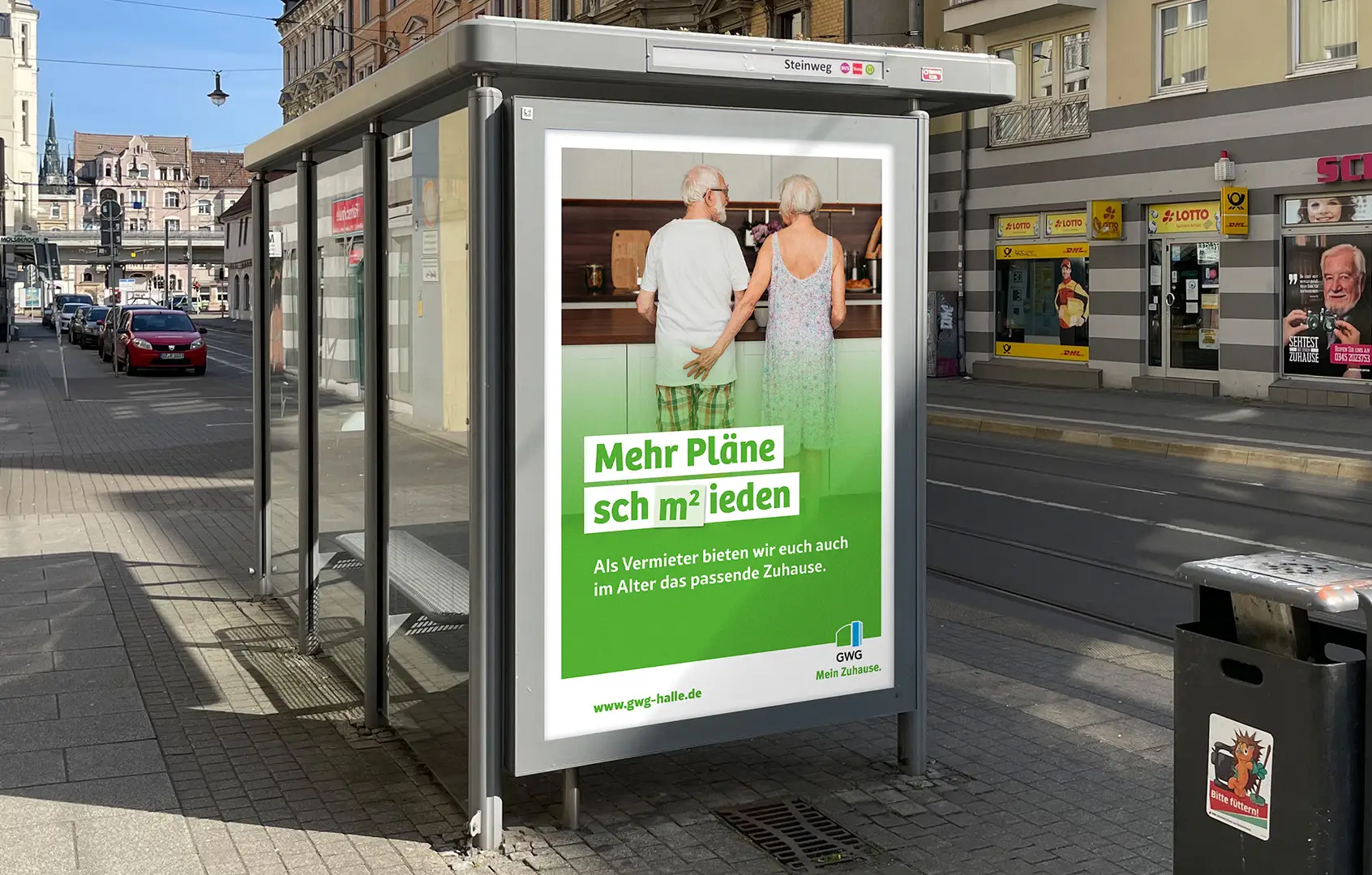 Ziel der Imagekampagne für die GWG Halle-Neustadt war es, die GWG als verlässlichen Partner zu zeigen, der Nähe schafft, Gemeinschaft stärkt und im Stadtteil fest verankert ist.
